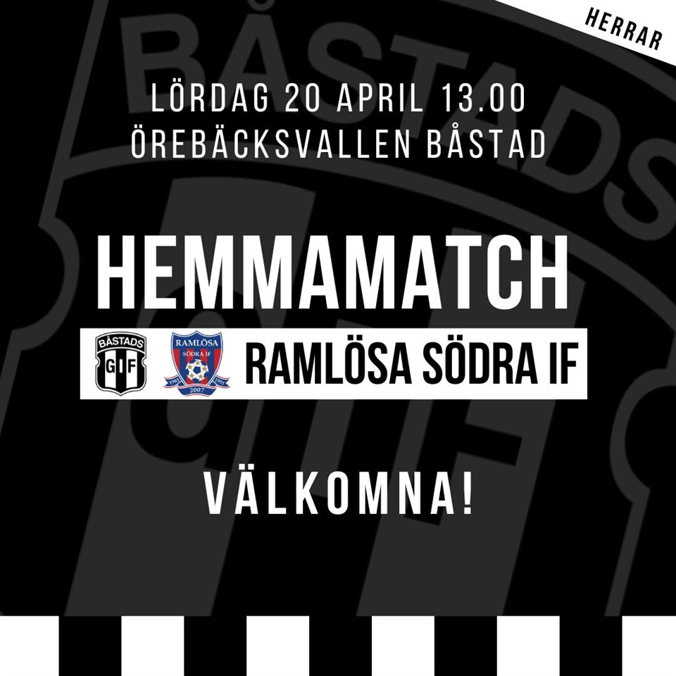 ” Efter en svag insats i hemmapremiären så var det skönt att vi studsade tillbaka direkt prestationsmässigt och gjorde en riktigt bra match borta mot Västra Karup förra omgången. Det gjorde att vi helt rättvist fick med oss en poäng hem till Båstad i en av de, på förhand, svåraste bortamatcherna för säsongen (matchen slutade 1-1). Nu är det dags för ännu en tuff match när vi tar emot Ramlösa Södra IF hemma på Örebäcksvallen på lördag. Ramlösa Södra leder serien efter två omgångar då dem tagit två segrar och har totalt + 7 i målskillnad. Vi ledare och spelare herrtruppen tycker det är roligt och stimulerade att möta bra fotbollslag och vi vet att vi en bra dag kan vinna mot alla lag i serien så vi ser fram emot en tuff och utvecklade match nu på lördag och hälsar Ramlösa Södra och våra supportrar varmt välkomna till Örebäcksvallen kl 13:00.