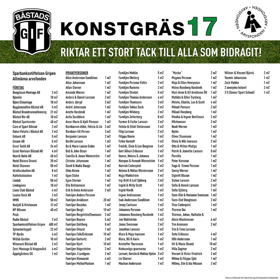 Underbar söndagsnyhet från Båstads GIF Blod, svett och tårar, efter många års slit är det äntligen klart att vi ska anlägga en konstgräsplan. En av våra många drömmar! I torsdags beslutade Båstads GIF styrelse att vi ska anlägga en konstgräsplan på Drivanplan med byggstart omgående, fantastisk!! Markarbetet inleds redan kommande vecka och vi kommer ha en toppmodern konstgräsplan på plats i november, precis som vår målsättning med projektet konstgräs 17! Vi är extra glada för våra underbara fotbollsledare och aktiva fotbollsspelare som nu får optimala träningsmöjligheter året runt. Vi är även glada för att innebandyn, gymnastiken och friidrotten nu möjliggörs fler träningstimmar och kan utöka sin verksamhet. Tusen tack till ALLA bidrags givare, Allmänna Arvsfonden, Sparbankstiftelsen Gripen, Skåneidrotten tillsammans med lokala företag, privatpersoner och medlemmar som gjort detta möjligt, nu tar vi nästa steg i vår omfattande anläggningsplan som består av 3 delar; friidrottsbanor, konstgräsplan och näridrottsplats med klubbhus/omklädningsrum. Vår insamling fortsätter och till vår glädje ser vi att bidragen fortsätter att strömma in, många vill verkligen ta chansen att vara med i denna historiska satsning. Randiga hälsningar en glad och tacksam styrelse.