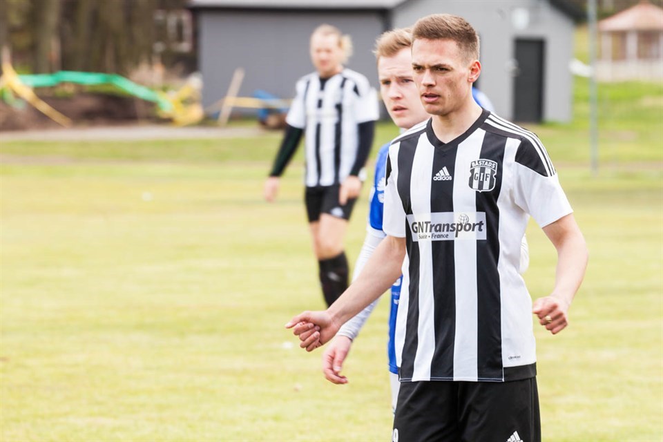 Vi är nu inne i tredje omgången och denna dag bar över åsen för en match mot Hjärnarps GIF. Vilka senast vann klart med hela 9-1 mot Vedby/Rönne och har då en vinst samt förlust på kontot. Första halvlek kontrollerades helt av Giffen, det stod ett lågt kämpande Hjärnarp på andra sidan som valt en mer kontringsinriktad fotboll denna dag. Vilket är helt väntat då det är två nykomlingar från två olika nivåer som idag gick till kamp. Trots ett tydligt spelövertag så lyckades inte Giffen få fart på skorna och hamnade då i en liten dvala. Spelet blev stillastående och istället för att driva upp i de fria yttorna så lurades man in i att hamna utanför sina motståndare. Man lyckas vid några tillfälle skapa tryck mot Hjärnarp och kommer även till ett par riktigt heta situationer utan att få utdelning, det var speciellt på de fasta situationerna som man hotar. Andra halvlek var betydligt bättre när man började driva upp spelet centralt och därigenom tvinga in Hjärnarp i banan, vilket då gav plats till Giffens duktiga ytterspringare. Man trycker nu på och det skapas chans efter chans, mitt i pressen har man också en väldigt misstänkt straffsituation då man med svart/vita ögon ser en Oscar Gustafsson göras ned. Hemmalaget har inte mycket under matchen, men i den 65 minuten är man ytterst nära att bjuda Giffen på en riktig kalldusch. Då man faktiskt är en fingertopp från att ta ledningen i matchen, efter en omställning som lite enkelt uppkommer så avlossas ett skott som räddas upp i ribban. Efter ramträffen så fortsätter Giffen att trycka på och jobbar fram flera bra läge, tillslut kommer det förlösande målet som forceras in av Axel. Med målet går luften ur Hjärnarp och Båstad kan spela avslappnat under följande minuter, vilket leder till att man gör 0-2 genom en lobbande Tobias Entin - första A-lags målet i Giffa tröjan! Innan matchen är slut får vi se våran rutinerade räv, Andy kämpa in 0-3 med sitt stödjeben från nära håll efter ett mycket bra inhopp. Vi summerar dagen med 3 underbara poäng på kontot, mindre bra start som genom tålamod växer till en bra avslutning! På nytt kan vi göra 4 byten som kliver in och bidrar, speciellt genom att två av dem gör 0-2 och 0-3. Otroligt bra! Slutresultat 0-3 (0-0) 0-1 Axel Rosvall Norrstam 0-2 Tobias Entin 0-3 Andreas "Andy" Boivie Mer info om matchen: Matchinformation / Skåneboll Rapport från Bjärefotbollen / Roger Bengtsson, Bjärefotbollen.se Ovanstående bild: Foto: Roger Bengtsson, Bjärefotbollen. Nästa lördag kl. 14:00 står Allerums GIF som motståndare! Vi hoppas ni har möjlighet att komma och stödja oss hemma på Örebacksvallen! Väl, mött!