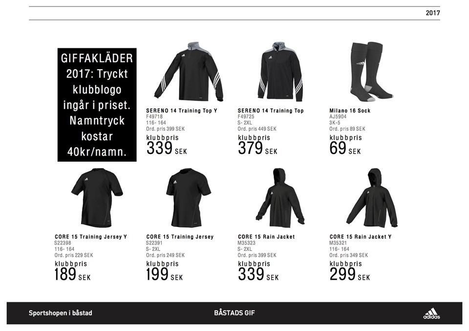 Nu är det dags för en ny klädutprovning/beställningsperiod för nya Giffakläder! Från och med måndagen den 3/4 till och med måndagen den 17/4 är ni alla välkomna till Sportshopen och prova ut nya Giffakläder, bifogat finner ni en pdf med utbudet och priser ni har att välja på, Varmt välkomna önskar Johan på Sportshopen
