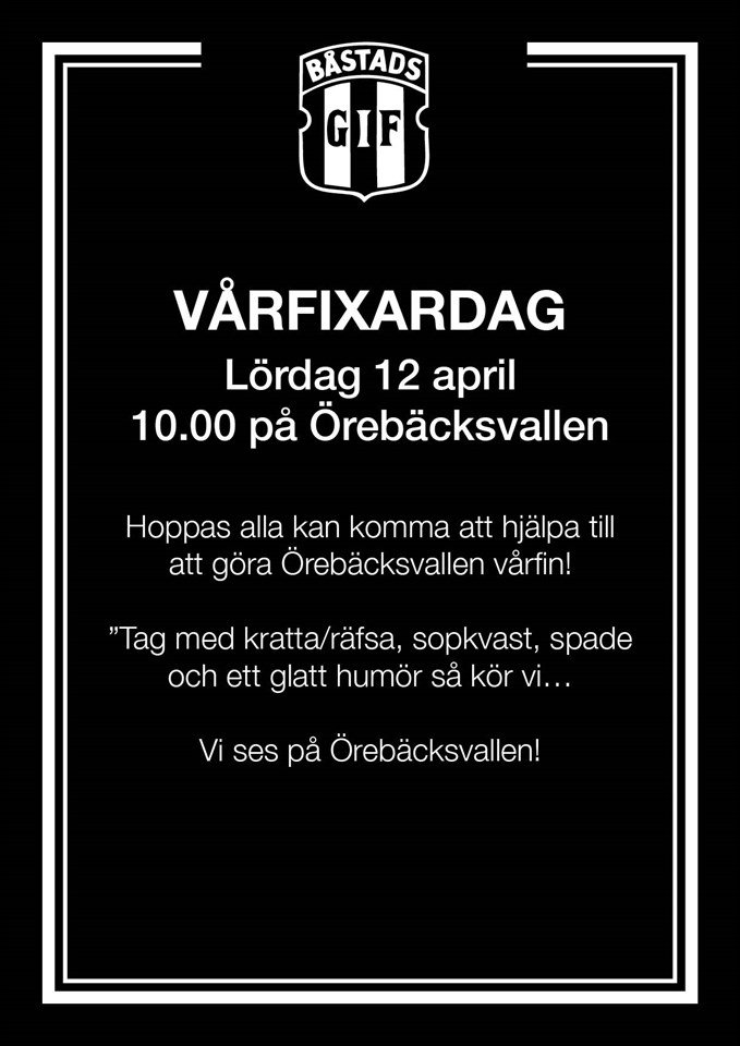 Varmt välkommen till vårfixardagen den 12 april kl 10,00 på Örebäcksvallen Klicka här för mer infomation